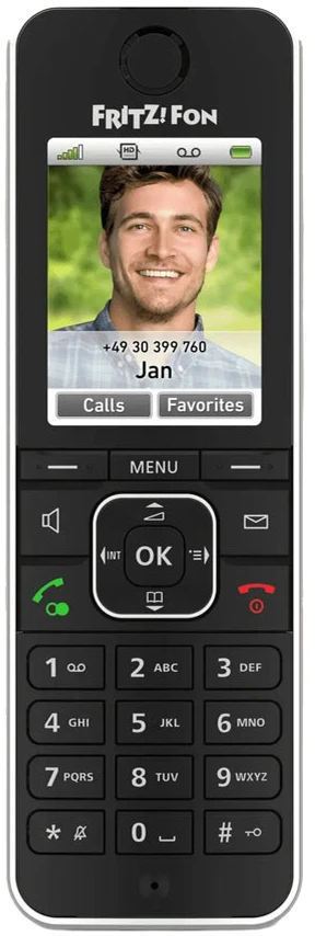 Die Einrichtung des FRITZ!Fons C6 ist im Handumdrehen abgeschlossen. Melden Sie das Telefon einfach an der DECT-Basis an und legen Sie los. Rufnummern und Kontakte legen Sie entweder bequem für alle Telefone im FRITZ!Box-Menü oder direkt am FRITZ!Fon an.